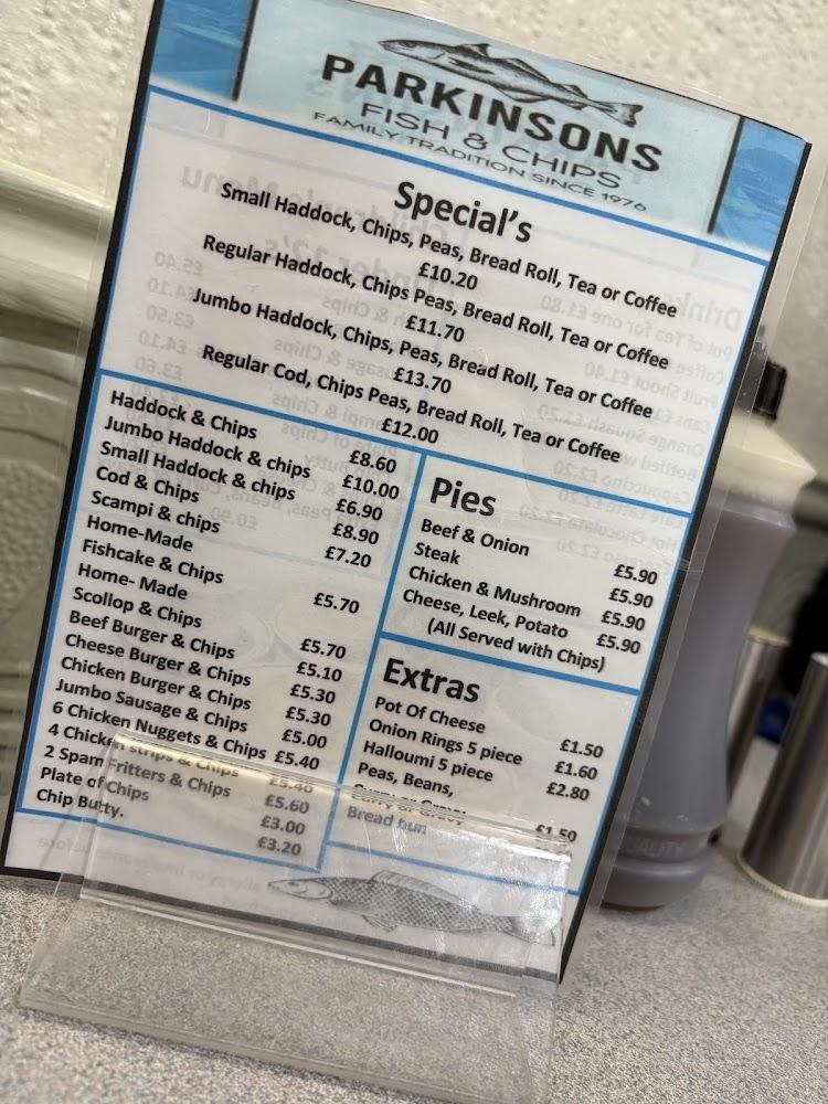 The location highlights a blend of practicality and charm, surrounded by quaint shops and the rich history of Louth. Frequented by local families and tourists, Parkinson's thrives on producing outstanding food, especially fish and chips, while embodying a community spirit.